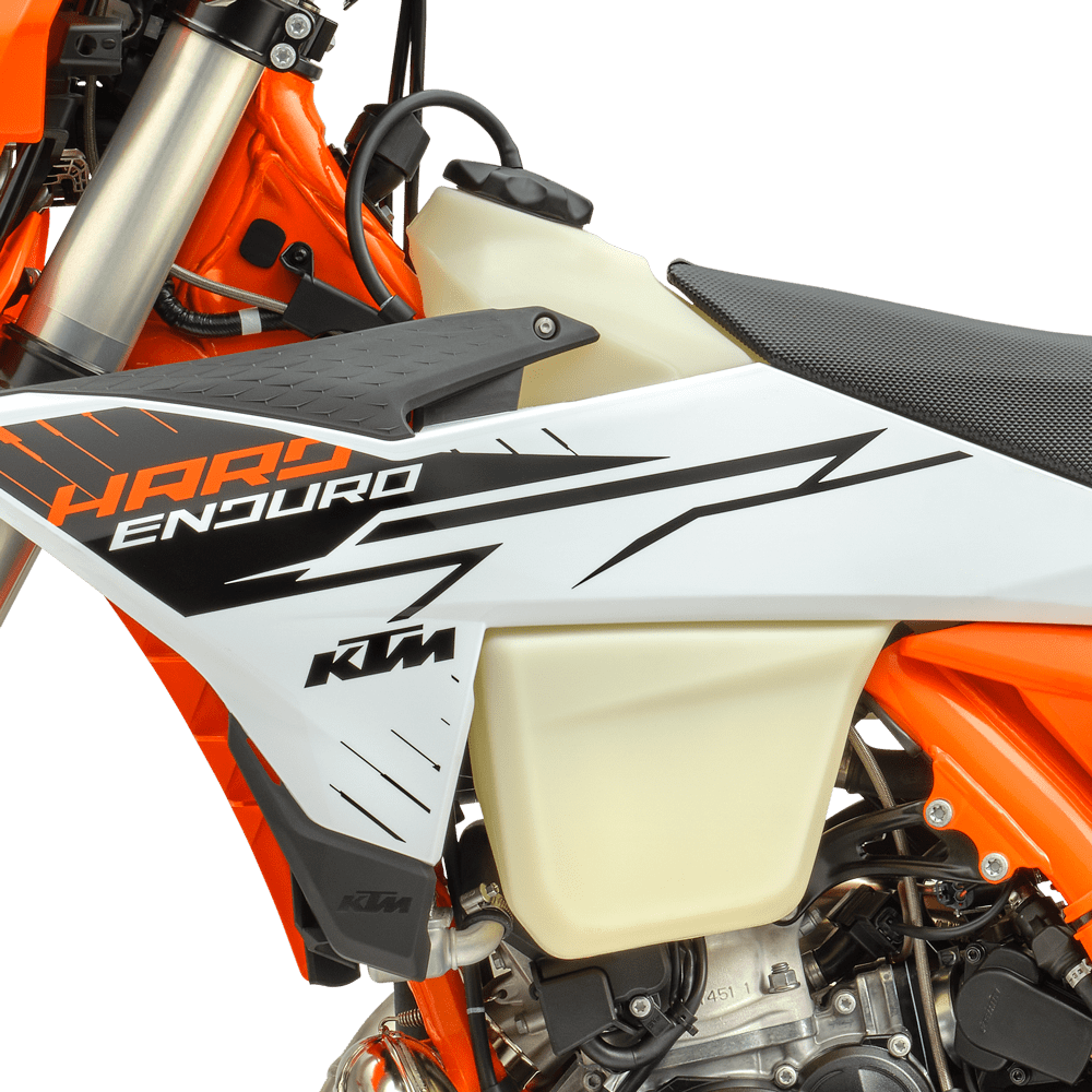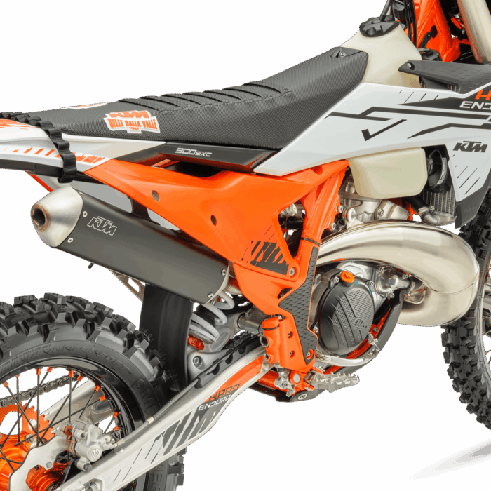 La KTM 300 EXC HARDENDURO 2026 está diseñada para enfrentarse a los retos más extremos del offroad desde el primer momento. Basada en la ya mítica KTM 300 EXC, esta edición especial destaca por su equipamiento exclusivo pensado para el Hard Enduro. Incorpora componentes de alto rendimiento, protecciones reforzadas y detalles de competición que la convierten en una moto preparada para salir directamente de la furgoneta y colocarse en la línea de salida. Con suspensiones avanzadas, piezas mecanizadas por CNC y un diseño gráfico único, representa el auténtico espíritu READY TO RACE para afrontar las pruebas más duras del calendario.