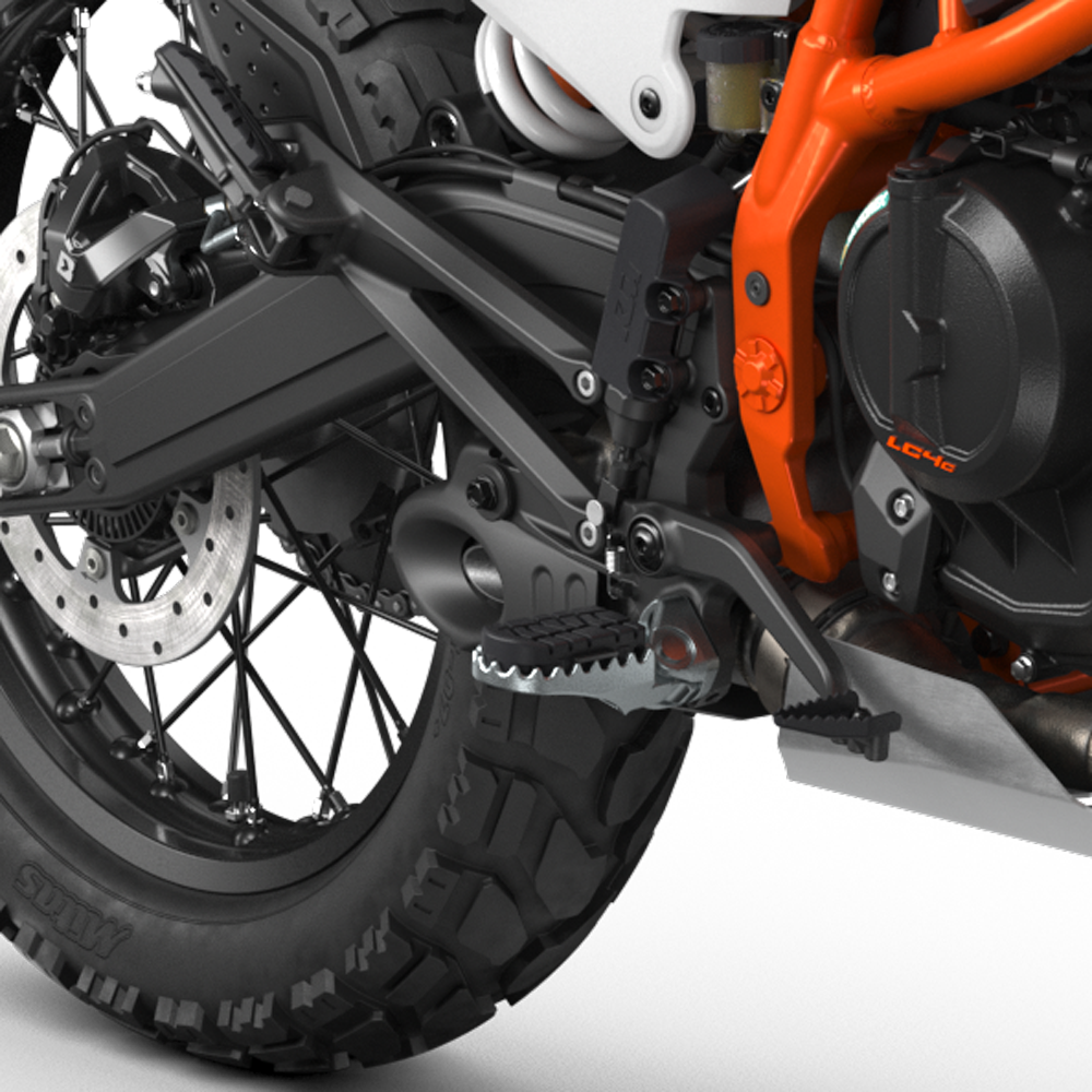 Equipada con un motor de 399 cc, ofrece una respuesta potente y controlable, ideal para afrontar terrenos exigentes. Su suspensión de largo recorrido y completamente enfocada al offroad, junto con la configuración de ruedas 21″/18″, garantizan una excelente capacidad de absorción y tracción en cualquier superficie.
